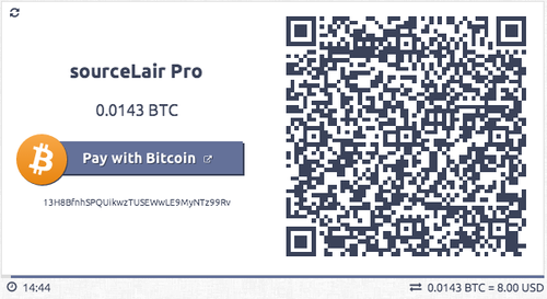 Today we are excited to announce Bitcoin support for upgrading to sourceLair Pro. We have been watching its growth and continuously increased adoption for a long time, so we decided that letting our users use their Bitcoins to upgrade their sourceLair accounts would be all but a bad investment. Giving as much flexibility as possible to our users, so as to improve their experience, while using sourceLair, is a top priority for us and the way of paying for sourceLair is not an exception for that.